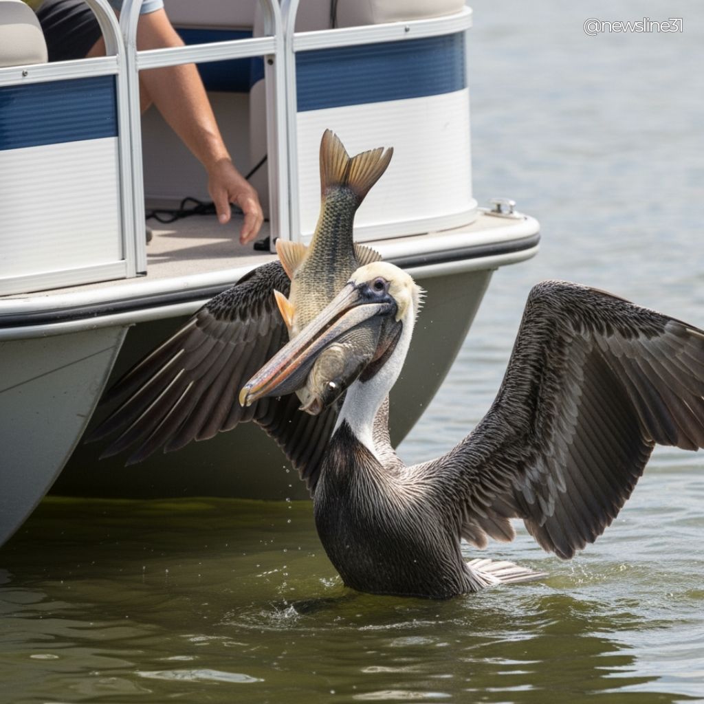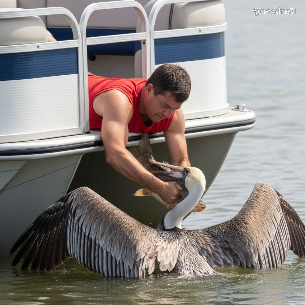 At first, it looked like a large fish was lodged in the pelican’s throat and simply would not come free. The more the man tried, the clearer it became that this was worse than anyone expected.