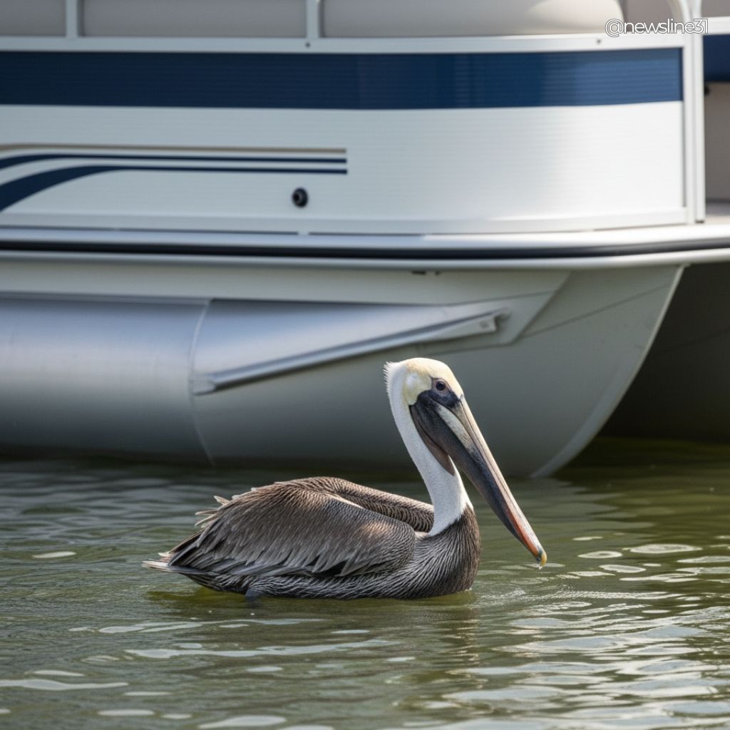 The boat moved closer, and the children watching grew anxious. “Hurry, save him,” they cried, seeing how exhausted the pelican had become.