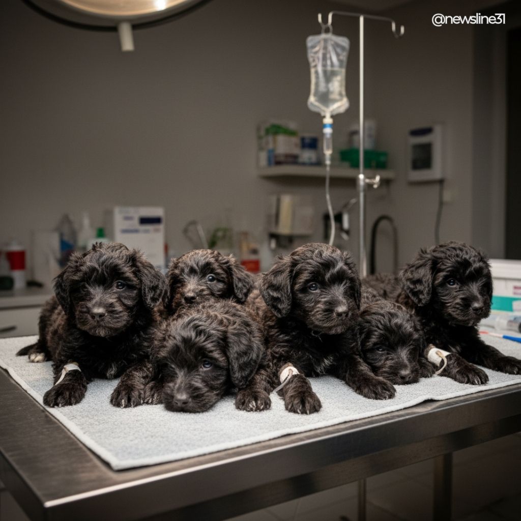 Late that night, they were rushed to the vet, and thankfully the clinic was still open. One by one, the puppies received first aid and urgent tests that revealed a frightening truth.