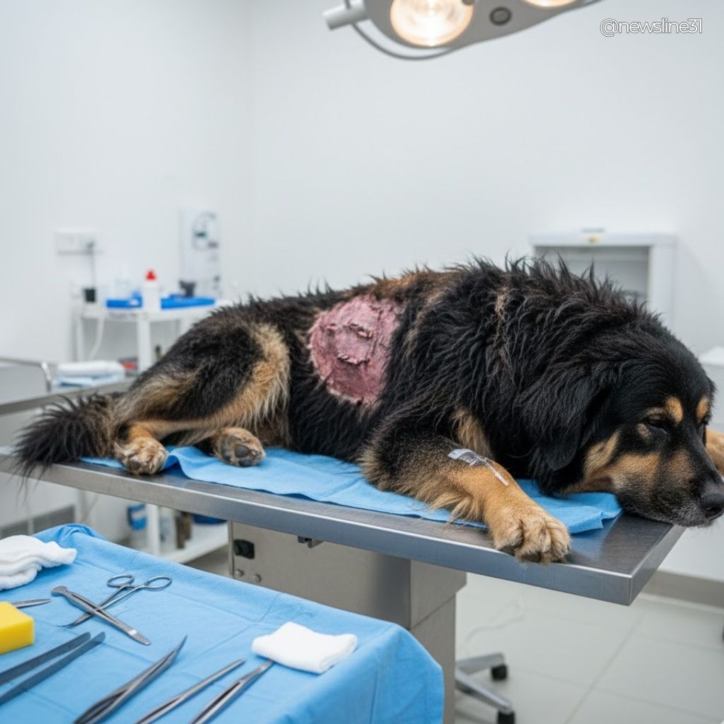 To ease his suffering, anesthesia was administered. His wounds were carefully cleaned, disinfected, and stitched.